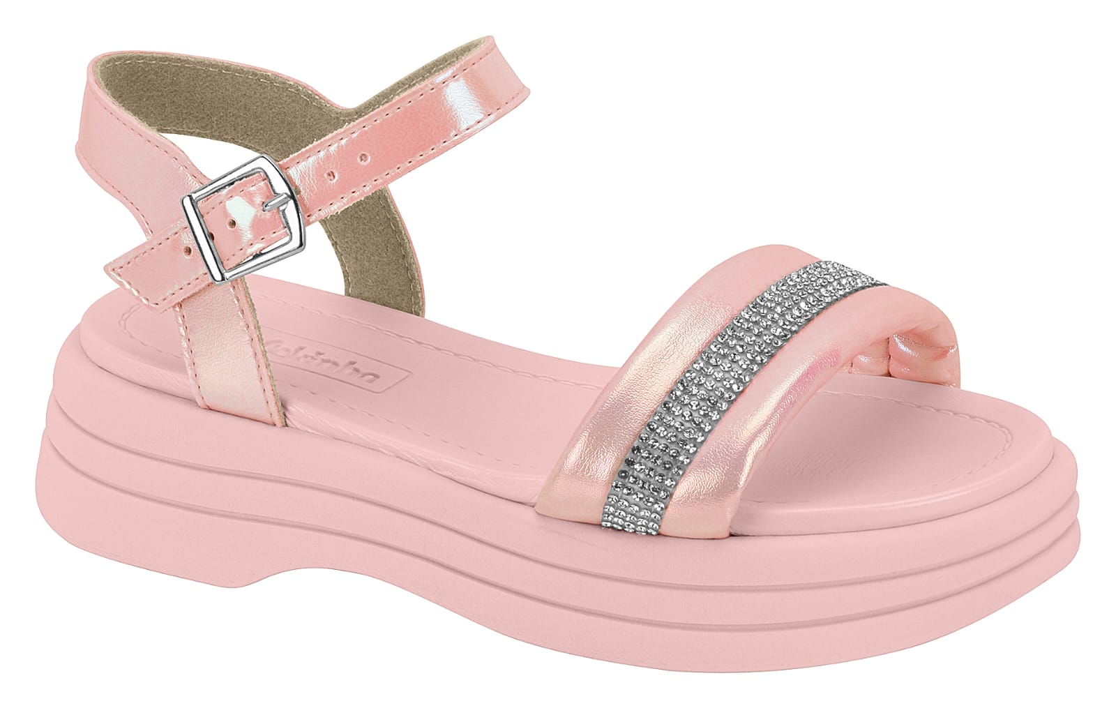 Com design moderno, ela traz um tom rosa delicado, solado macio em camadas e uma tira frontal acolchoada com brilhos delicados, dando aquele toque especial que encanta em qualquer look.